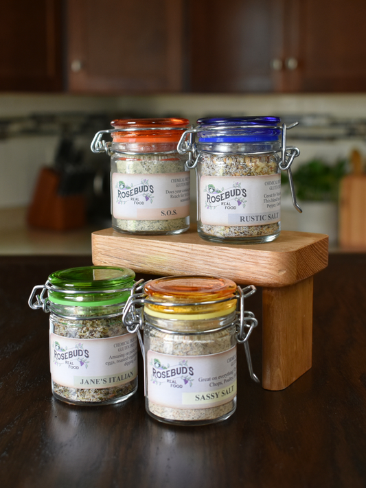 Ingredients: Baja Gold 100% Unrefined Mineral Sea Salt (solar dehydrated), Organic Garlic, Organic Rosemary, Organic Thyme, Organic Basil, Organic Black Pepper, Organic Oregano, Organic Parsley, Organic Crushed Chili Peppers. NON-IRRADIATED