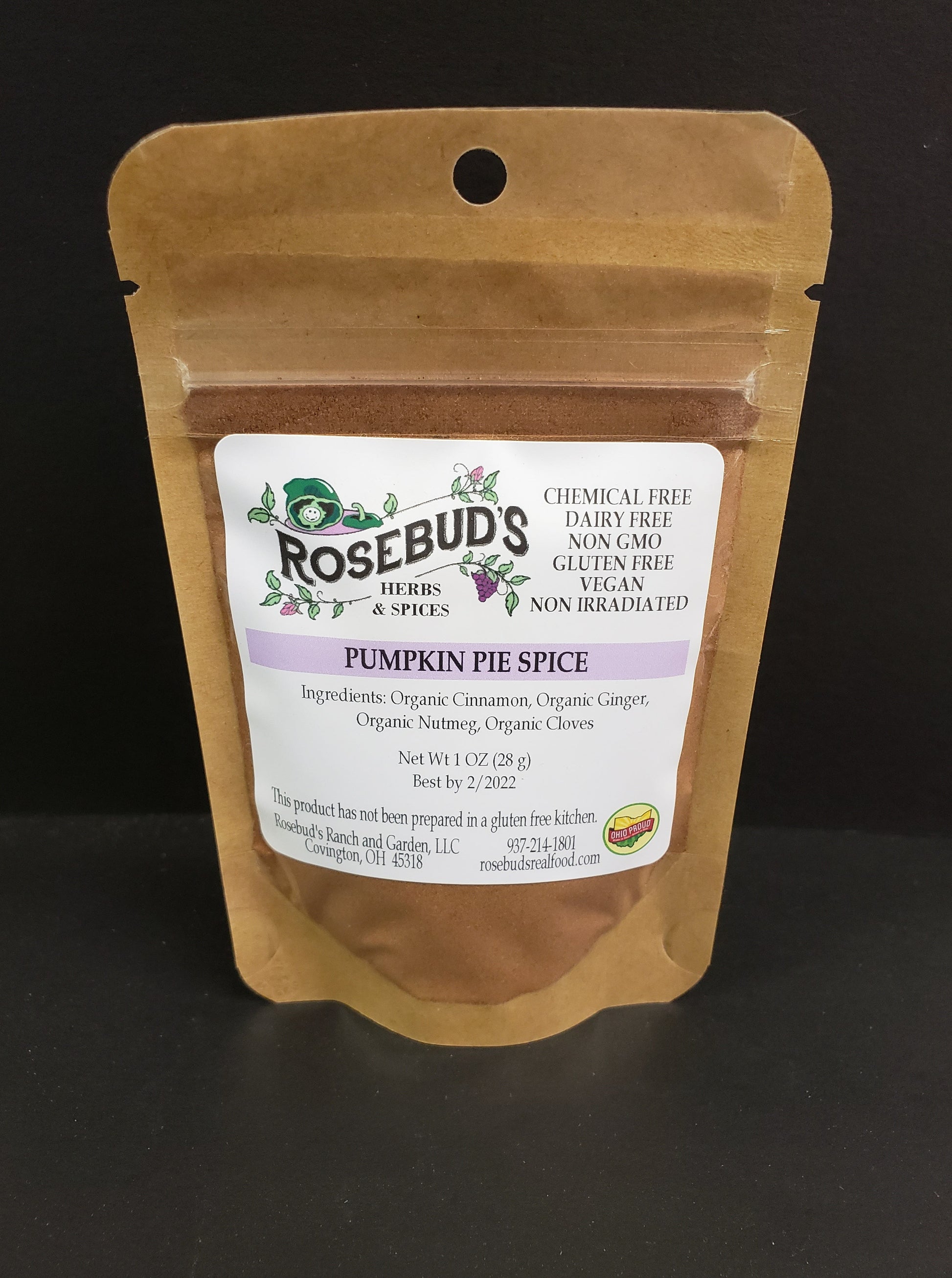 Ingredients: Organic Cinnamon, Organic Ginger, Organic Nutmeg, Organic Cloves